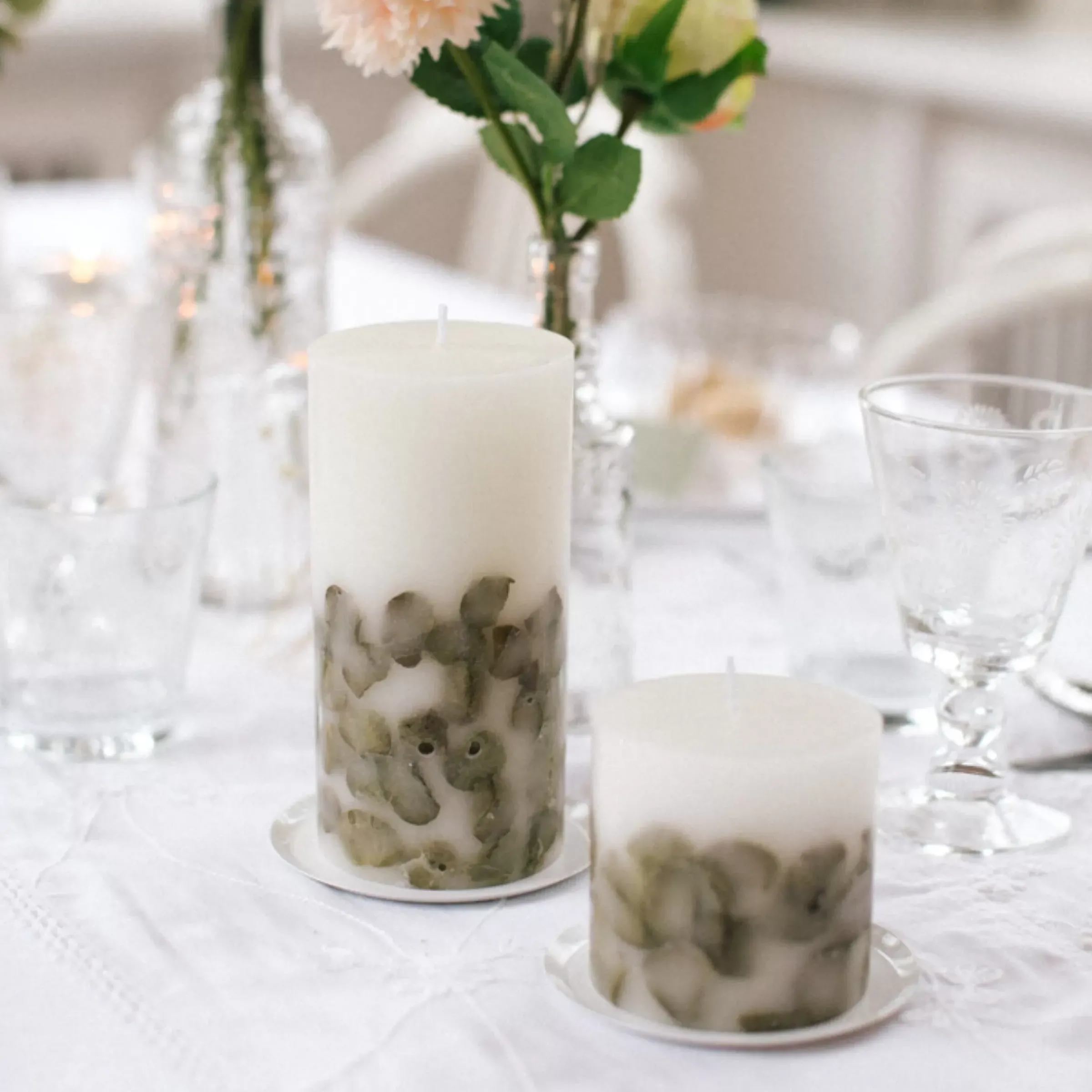 Avec Notre Bougie Ronde A L’Eucalyptus Et Aux Feuilles D’Eucalyptus Sechees, Tu Ne Te Trompes Jamais ! Elle Ne Convient Pas Seulement Pour Les Décorations De Table De Mariage, Mais Peut Etre Integree A La Décoration De Table A Toutes Les Occasions Ou Simplement Placee Dans Un Joli Photophore Transparent. L’Aspect Naturel De L’Eucalyptus Cree Immediatement Une Atmosphere Detendue – Et Ce Pendant Des Heures!
