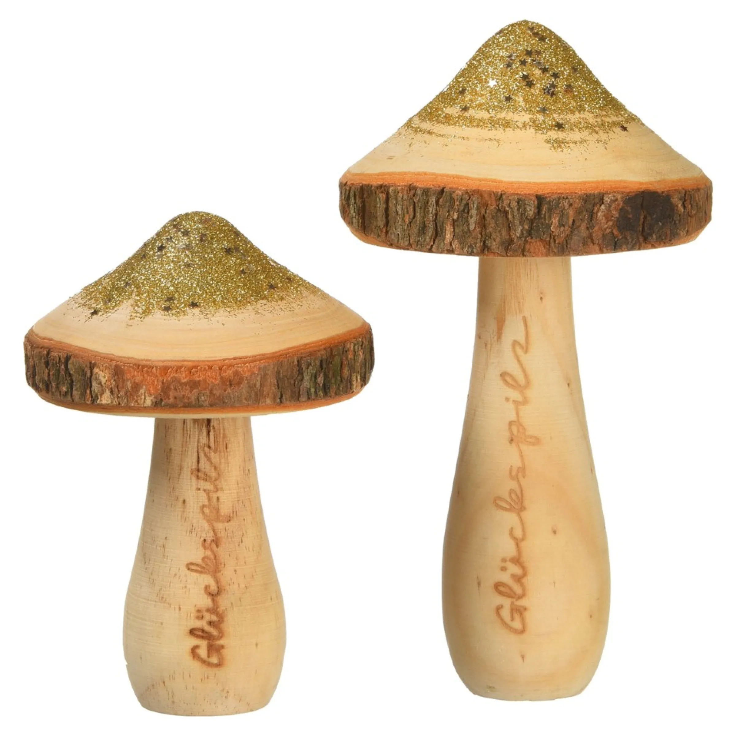 Comme Si Les Petits Champignons Avaient Recu Un Peu De Poussiere Scintillante,Se Retrouve En Parfaite Harmonie Avec Le Bois Naturel,Des Paillettes Dorees Sur Le Dessus Des Champignons. Pour Attirer L’Attention Sur L’Automne, Place Le Duo Sur Ton Champignon.Sur Le Rebord De Ta Fenetre. L’Inscription « Gluckspilz » (Champignon Chanceux) Sur Les Deux Champignons Fait De Ce Set Un Cadeau Ideal Pour Tes Proches !