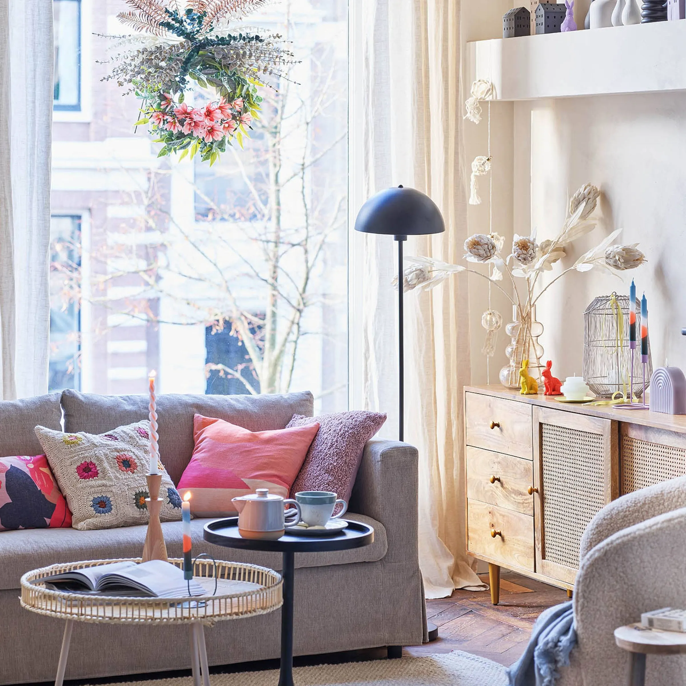 Les Pieds De Table Beiges Ainsi Que La Base De La Surface De La Table Sont Fabriques En Fer, Ce Qui Confere A La Table La Stabilite Necessaire. De Plus, La Surface De La Table Est Entouree D’Osier, Ce Qui Lui Donne Un Aspect Naturel!