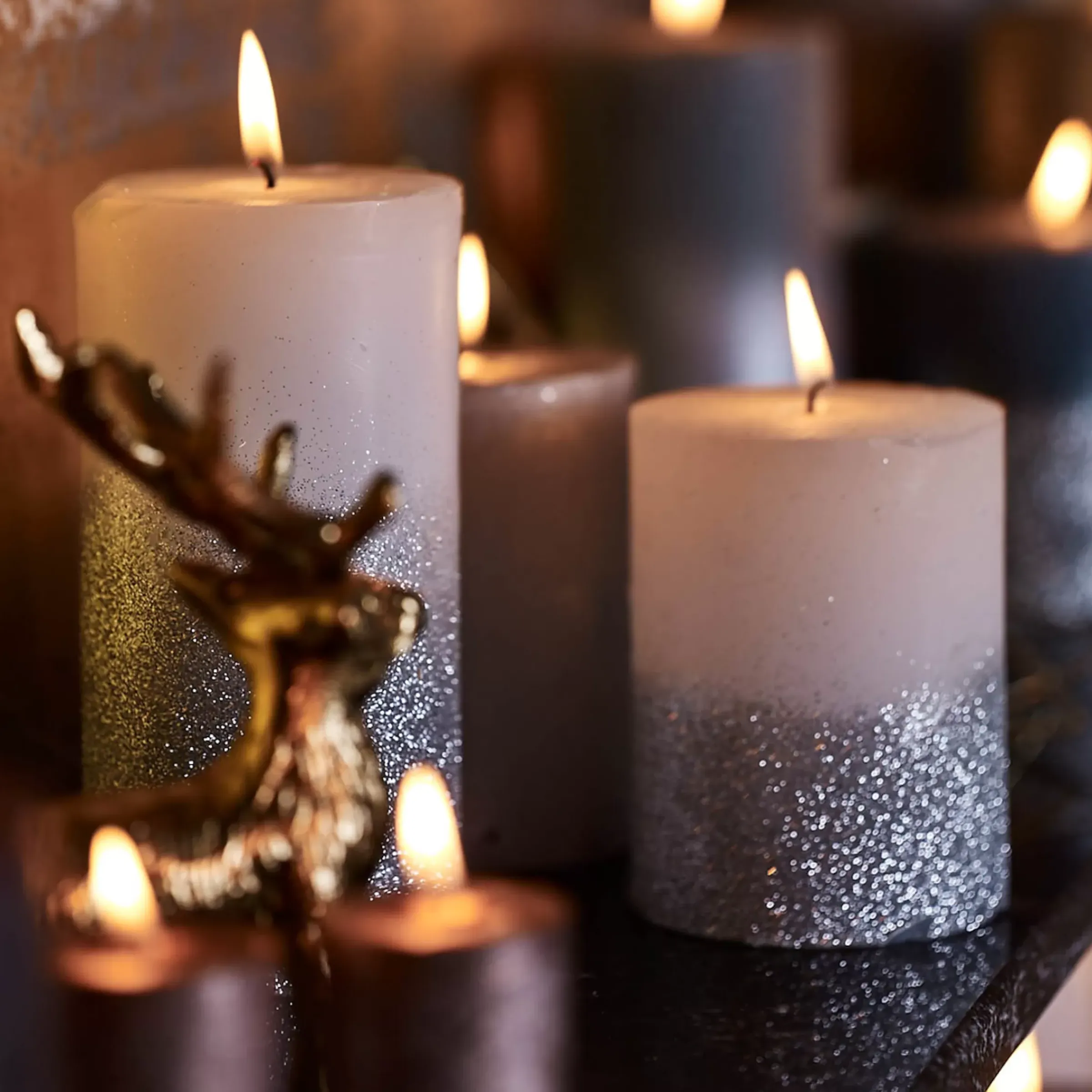 Depot Bougie Pilier Rustic Silver Glitter