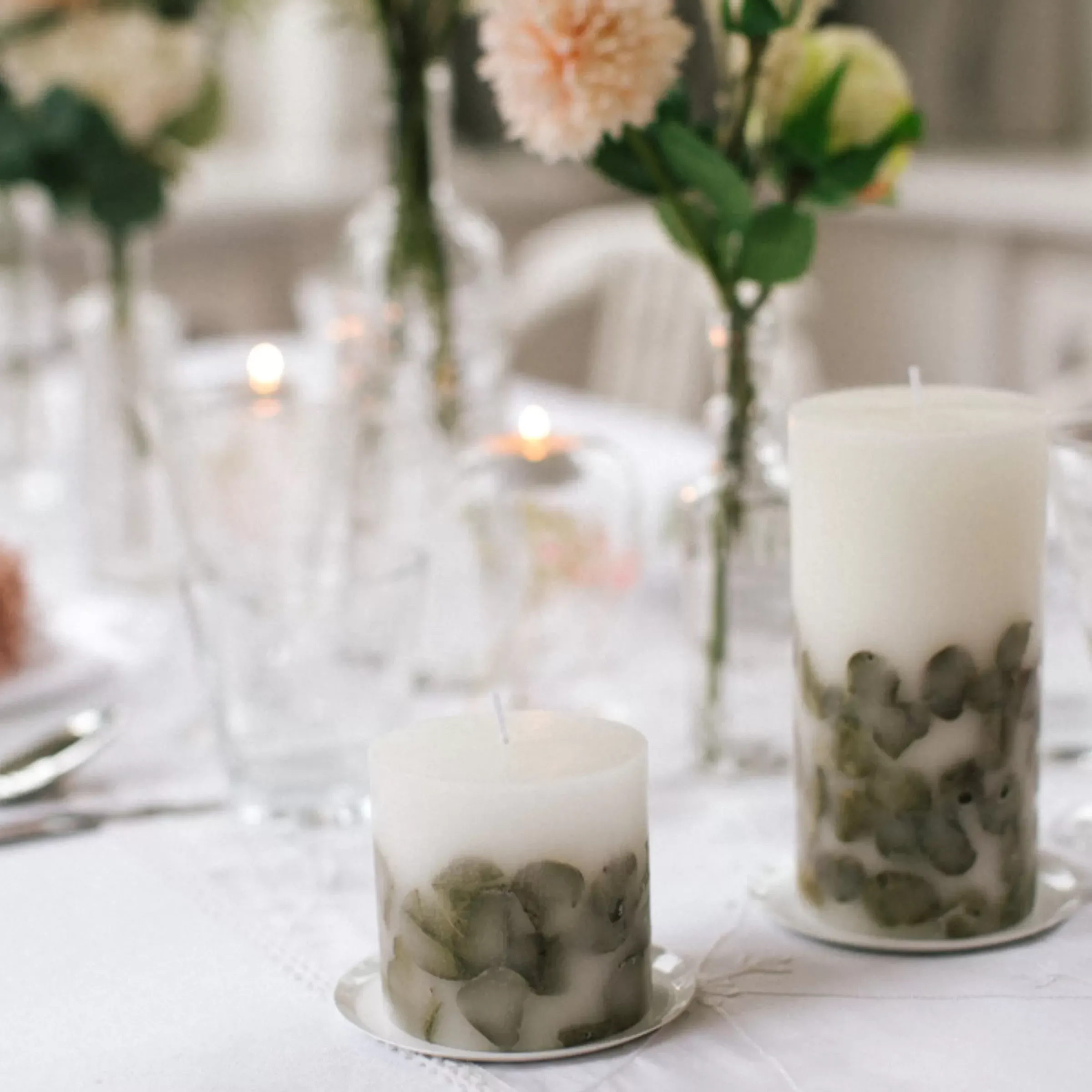 Avec Notre Bougie Ronde A L’Eucalyptus Et Aux Feuilles D’Eucalyptus Sechees, Tu Ne Te Trompes Jamais ! Elle Ne Convient Pas Seulement Pour Les Décorations De Table De Mariage, Mais Peut Etre Integree A La Décoration De Table A Toutes Les Occasions Ou Simplement Placee Dans Un Joli Photophore Transparent. L’Aspect Naturel De L’Eucalyptus Cree Immediatement Une Atmosphere Detendue – Et Ce Pendant Des Heures!