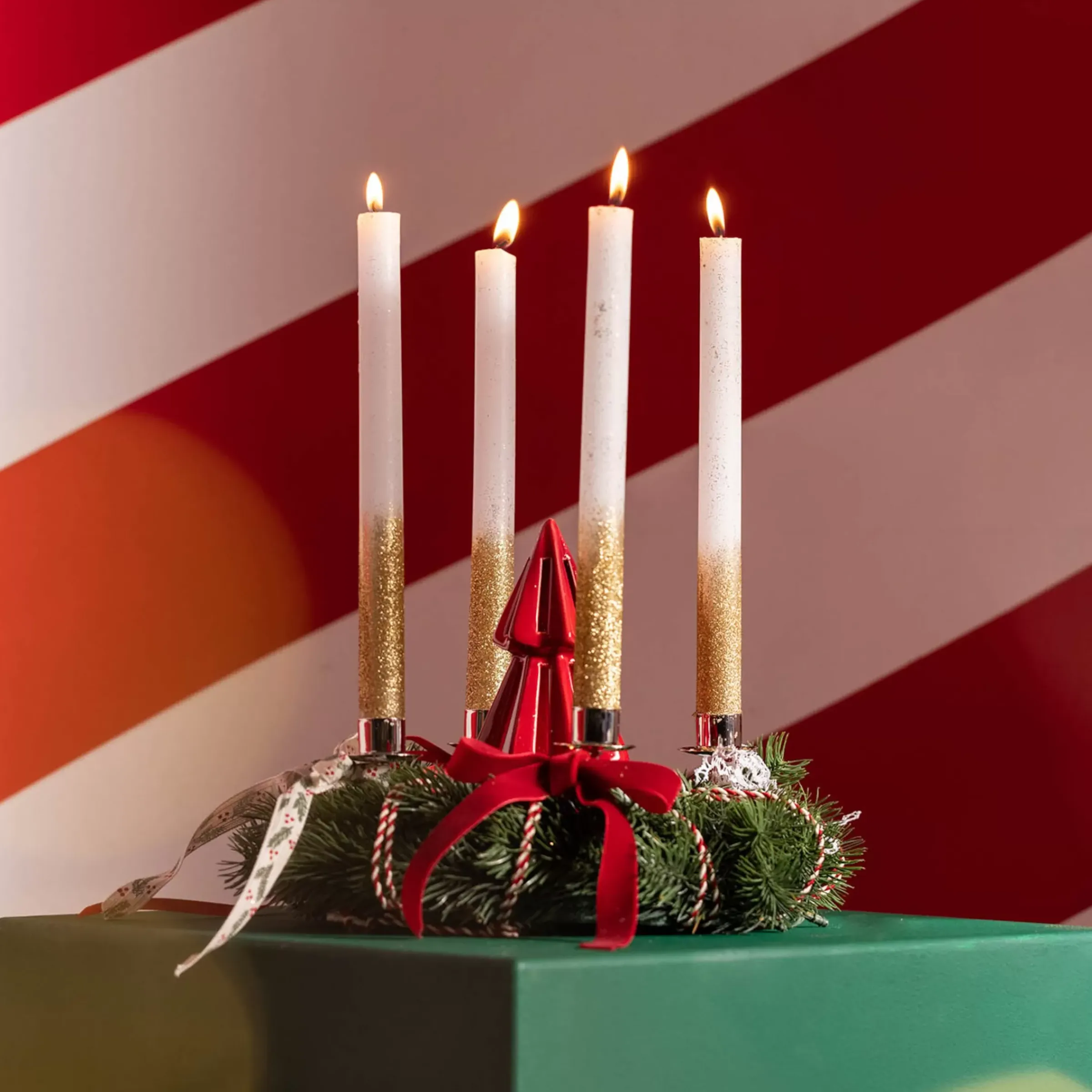 Ce Set De Bougies A Tige Se Presente De Maniere Delicieusement Exclusive ! Ce Set Contient 4 Bougies Qui Ont Chacune Une Duree De Combustion De 9 Heures. L’Aspect Scintillant Particulier Convient Parfaitement A Un Repas De Fete, Par Exemple Le Repas De Noël. Vous Trouverez Bien Sur Des Bougeoirs Assortis Dans Notre Boutique.